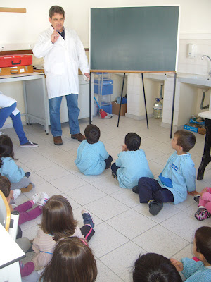 Colámos algodão no fantasma (textura, motricidade fina, sentido estético...) e no final cada criança inventou um nome para o nosso amigo fantasma (imaginação, criatividade...)