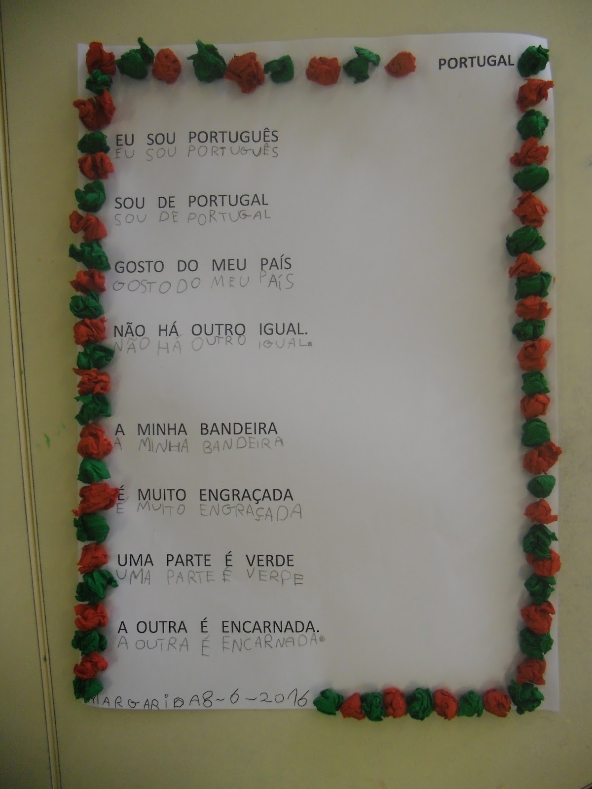 aprendemos uma canção sobre Portugal,