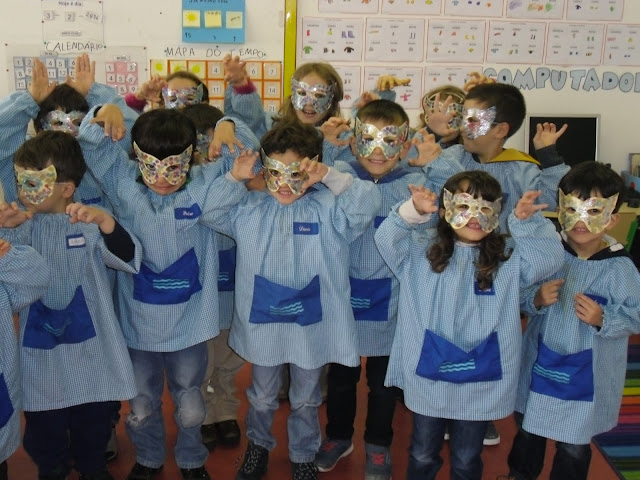 Fizemos um Baile de Máscaras muito divertido! Dançámos, fizemos rodas, brincámos com os amigos e rimos muito... :)