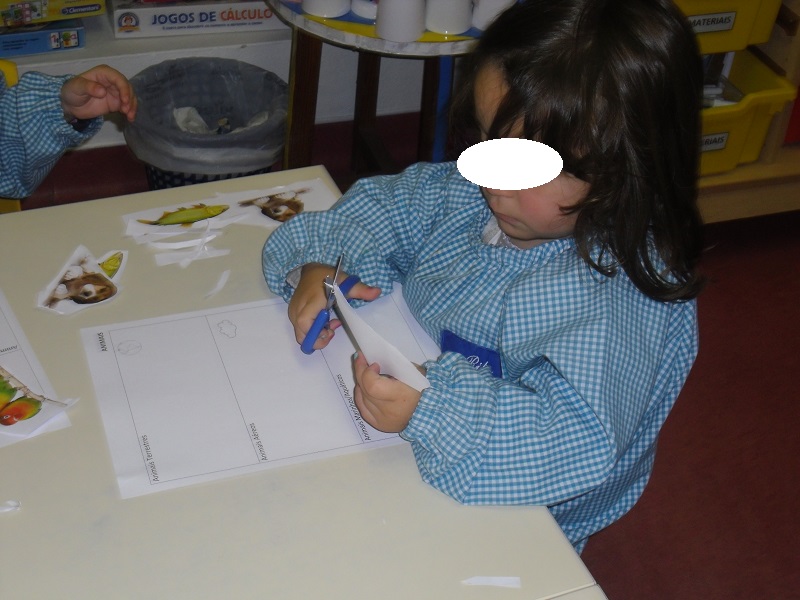 E tal como em todas a atividades, esta também foi pensada tendo em conta a faixa etária das crianças. O grau e dificuldade teve em conta a sua idade, assim as crianças mais novas apenas recortaram um animal de cada grupo!