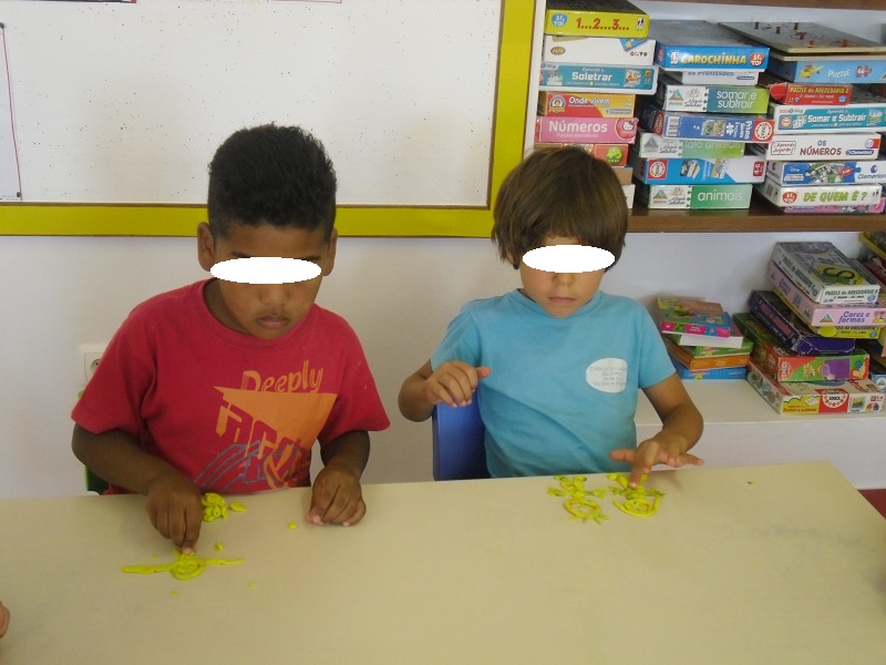 As letrinhas estavam todas misturadas e com muita atenção começámos a juntá-las umas às outras de modo a escrever o nosso nome...