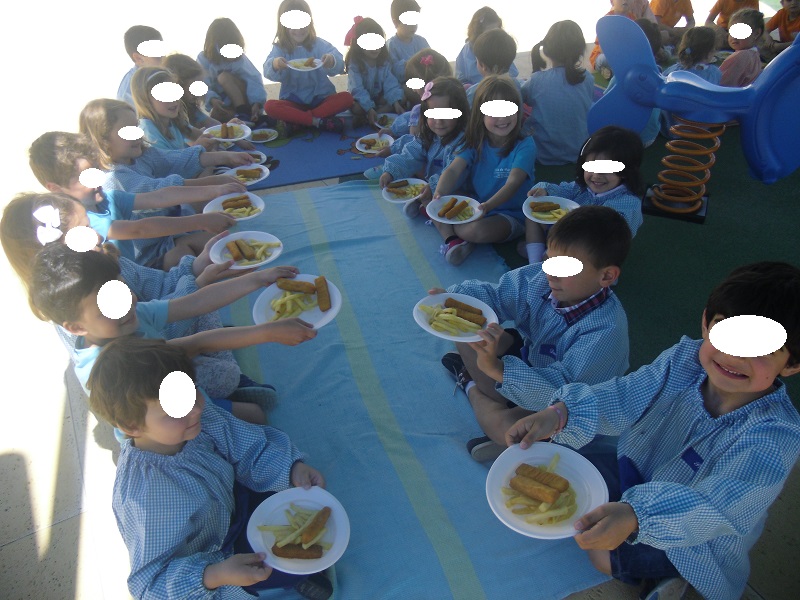 Chegámos à escola e almoçámos no nosso espaço exterior...