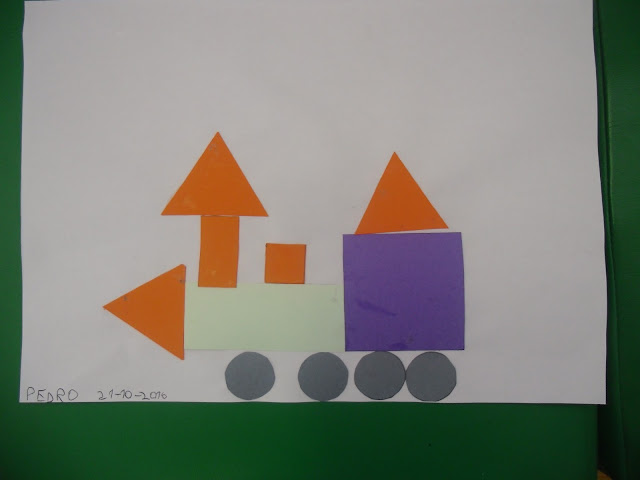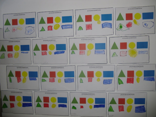 E como gostámos tanto do resultado final tivemos uma ideia: Convidar os pais a vir à nossa sala ver a exposição das Figuras Geométricas.